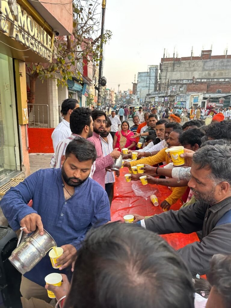 As part of the initiative, Thandai was distributed as Maha Prasad to all the worshippers visiting the temple and nearby areas. The refreshing and traditional drink, offered with devotion, symbolized purity, blessings, and togetherness. Volunteers ensured smooth distribution, maintaining hygiene, discipline, and a warm, welcoming atmosphere for everyone present.